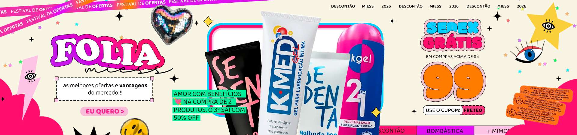 Amor com Benefícios 💘 Na compra de 2 produtos, o 3º sai com 50% OFF